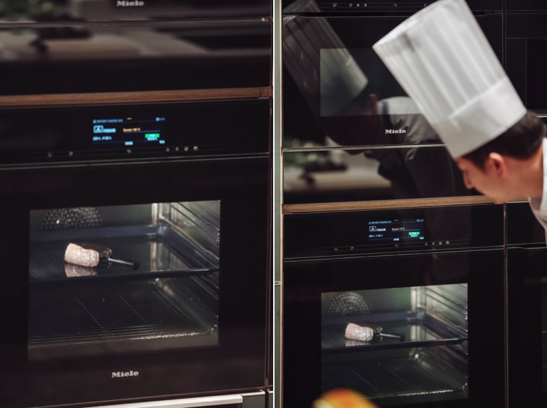 怪味和牛佐鳄梨、黑松露八宝盐焗鸡,主菜登场纵享美意。雅生专利的SilicaDur ®晶耀石英石材质不惧浓油赤酱,脏污一冲即净;特别的小水槽分区设计,不仅可以用来放置水果,也可用于冰镇香槟,细节之处呈现奢华享受。同时还有黑科技产品美诺烤箱、微烤一体机加成美食,加湿烹调功能不仅可以保证菜品均匀受热,还可牢牢锁住汁水。美诺烤箱特有的FoodView功能,可通过Miele APP随时查看食物的烹饪状态并随时随地调节温度和时间,使烹饪变得轻松有趣。