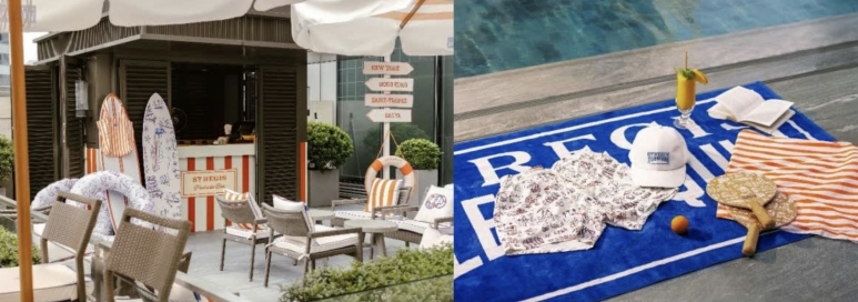 賓客可在香港瑞吉酒店一睹南法聖特羅佩的盛夏風情,沉浸於Vilebrequin主題池畔體驗。這片都市綠洲不僅提供奢華躺椅、限量手工意式雪糕與匠心池畔美饌,佐以合家歡遊戲點綴其間,邀請賓客遁入逸樂之境,在尊尚地段締造雅緻無憂的夏日假期。此外,酒店內同步呈獻Vilebrequin期間限定店,匯聚精選泳裝與度假服飾系列,其中更包括香港瑞吉酒店獨家發售的專屬限量印花列。