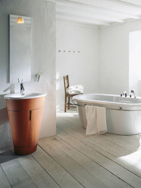 AXOR Starck 面盆及浴缸系列的珍白石结合了天然树脂,亲近自然且经久耐用